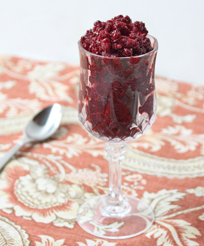 So, while you are more than welcome to use this black pepper blackberry slush as a dessert, I'm hoping you give it as try as an intermezzo at your next dinner party. Some of you may call this a "granita," and it is very similar, but it's not quite as icy as that. This has a softer, slushier texture.