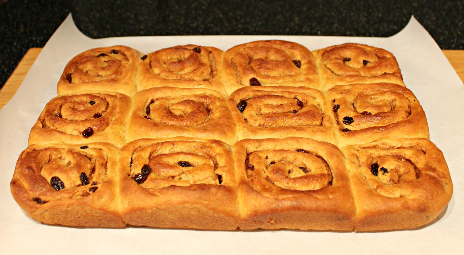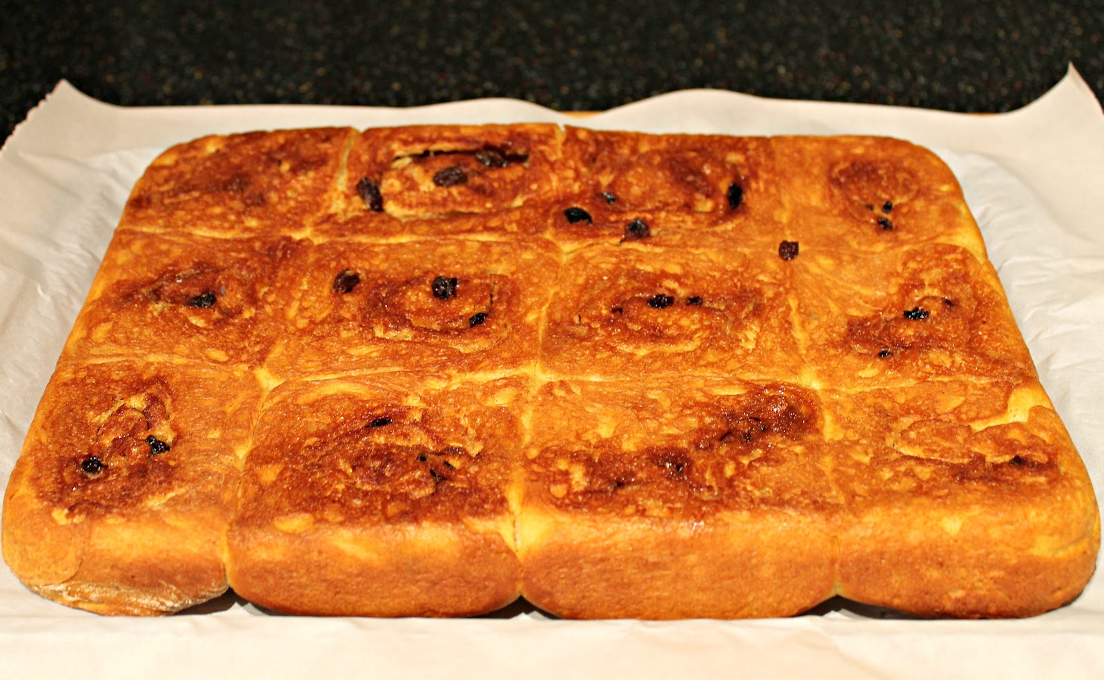 Place rolls cut-side-up in greased 11”x16” baking pan. Cover and let rise again in (no-heat) oven with only the light on, until nearly doubled, about 1 hr.